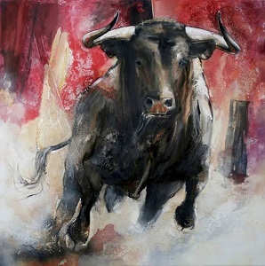 Angry bull raves at