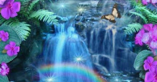 The waterfall’s diamond mist.