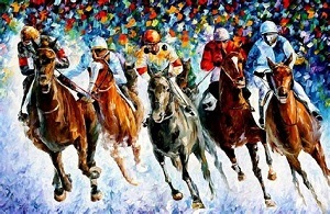 The oval of sand and sod stretching outAnd around the lush pasture of freshly mown green.The anticipation of speed, grace and powerMakes me feel like a child of sixteen.