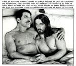 A gay Jesus cuddles in bed with rock star Freddie Mercury in “Marriage Made in Heaven” by cartoonist Mr. Fish of ClownCrack.com, also known as Dwayne Booth. He created the image to support marriage equality. After a vote banning same-sex marriage, Mr. Fish decided to expose the hypocrisy of anti-gay Christians indirectly by showing Jesus in bed with a gay icon. More info