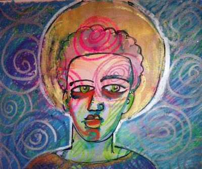 Johnson’s currently evolving series of spiritual portraits include untitled painting above. “The paintings are connected thematically and represent various degrees of sadness and serenity, as well as, emotion generally,” she said. “I am thinking SO much these days about the issue of divinity, perfection, and how to reconcile what we think we know about ourselves and the world around us and what we KNOW (on a Spirit level).”