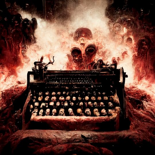 “Typewriter in Hell,” created with Midjourney AI