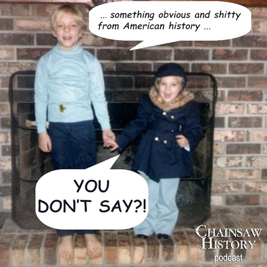 On a whim I wrote my first podcast script. There wasn’t even a name for the show. And the original concept was to explore our family tree, something quickly abandoned once we got behind our microphones. Creating is a strange business. It’s happened to me many times, when the creation itself seems to take over and assert its will. We weren’t doing a boring show no one would listen to about our family history that no one cares about. Rather we were creating a foul-mouthed history podcast where we explored our subjects with intentional disrespect, planting our flag by talking shit about George Washington in the first two standard episodes. And the name hit me: Chainsaw History, where we cut history down to size.