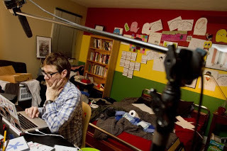 But making a movie is kind of boring. We shot for two days in Ohio and mostly I just sat around waiting for the cameras and microphones to get set up. I only have a couple of lines in the scenes we shot. I seem to be sort of a Peter Tork character in this. I'm kind of the dummie. I just go along with what's happening. But I'm writing a scene for myself in which I get to break out of that. Once the film is done I'll let everybody else guess which scene I wrote (assuming mine makes the final cut).
