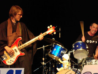 One is the 1974 Fender Musicmaster seen in this photo at the Matinee in Akron, Ohio in 2007. This is the gig that was written about in the book Zen Wrapped in Karma Dipped in Chocolate: A Trip Through Death, Sex, Divorce, and Spiritual Celebrity in Search of the True Dharma. Imagine! You could actually own the bass I played in the gig from the book! What a thrill! (I'm geeky enough that if I were a fan of someone, this kind of thing would be really cool to me. So I'm not making fun at all here.)