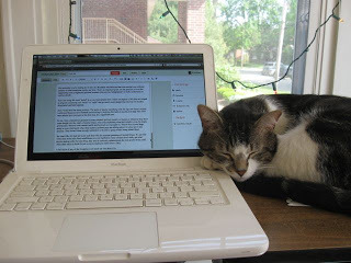 Here's a photo to show you what I had to deal with while writing this. Crum knows he's being obnoxiously cute. I'm sure of it.