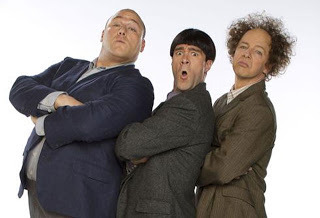 I liked the movie but I didn't love it. I wanted to love it. But I couldn't. Here's what was good about the movie. Larry David was terrific as Sister Mary-Mengele, a nun who bears the brunt of most of the Stooges outlandish behavior. All of the actors who play the Stooges do a tremendous impressions of the real guys, particularly Chris Diamantopoulos as Moe. He really has the voice and the mannerisms down. And there were some genuine laugh-out-loud moments. I'm usually not the type who LOLs at movies even when there's an audience in the theater with me. But I actually laughed aloud several times during my private screening.