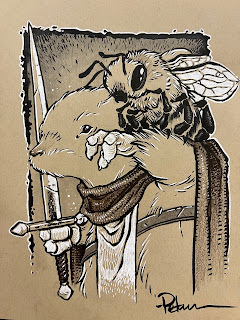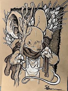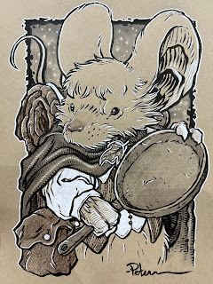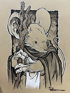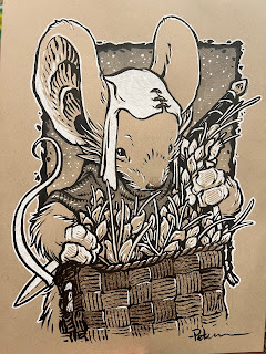 But I decided even before I started on the piece, that it could pull double duty and be used for a 2024 Mouse Guard Calendar. So, my process was more involved since I knew the final piece would also be colored and used for print.