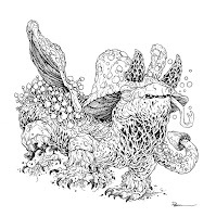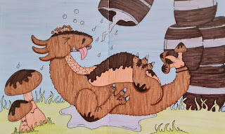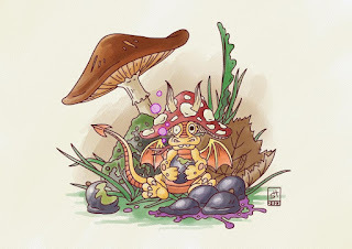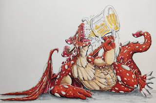 For #DiscoveringDragons, I post two or three prompt words for everyone to make into a dragon. It's a nice framework for artists of any skill level to focus some time on an 'assignment' to shake the rust off or get the pencil moving again––all while also being loose enough that there's plenty of room for individual expression and interpretation.This month the prompt was three words: Drunkard & Mushroom.