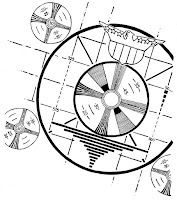 Overlay: To get the Test Pattern cross-hairs to look like my layout, I needed to ink it separately on another sheet of bristol. First I took a real test pattern and then cleaned it up and replaced the Indian head on top with Flagg's logo. Then I printed it out on copy paper. Not wanting to use as large of a sheet of bristol just for this effect, I shrunk the design down before printing it and taping it to the back of a sheet of 12" x 12" Strathmore 300 bristol. On the lightpad I inked everything as carefully as I could, but without rulers so it still looked hand drawn. I then scanned the overlay sheet at a higher resolution to make up for it being smaller than the other inks without losing line quality.