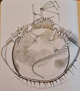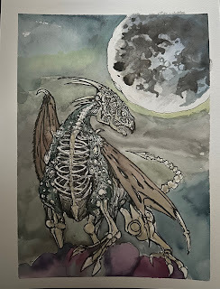 For #DiscoveringDragons, I post two or three prompt words for everyone to make into a dragon. It's a nice framework for artists of any skill level to focus some time on an 'assignment' to shake the rust off or get the pencil moving again––all while also being loose enough that there's plenty of room for individual expression and interpretation.This month the prompt was three words: Many-Eyed, Bone, & Moon.