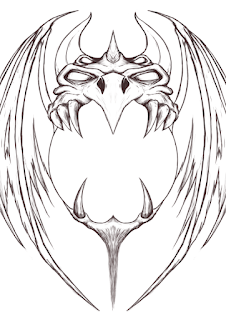 Even before that I knew I wanted my lion headed dragon to be vomiting lava, so the head pose needed to work with that. I sketched the head and body on a sheet of copy paper, and then scanned it into photoshop as I blocked in some wings using clip art as a guide.