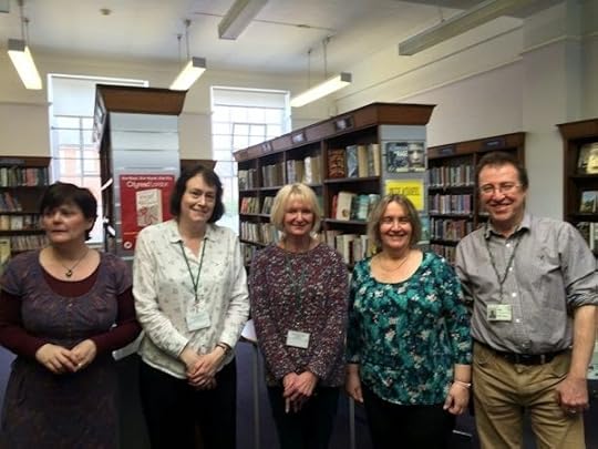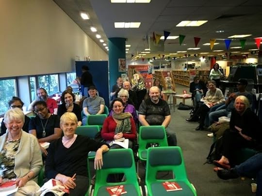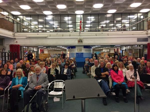 South by Sarf West to the magnificent 1930s redbrick palace of literacy that is Surbiton Library. Staffed b a crack team of ridiculously friendly librarians (see below) I arrived with ten minutes to spare to find an enourmous audience waiting for me. Very gratifying.