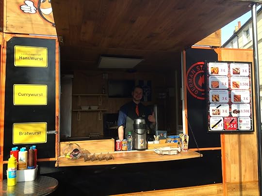 I arrived with a couple of hours to spare to I sated my hunger with a Smoked Krakauer inna bun from this guy...