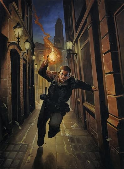 Last year I met artist Wayne Reynolds at a convention in Belgium and he said he'd always wanted to do a cover for Rivers of London so I commissioned him to do a sort of alternative cover for an imaginary edition of the book. Here is a low res copy...