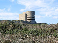 With the rest of the Channel Islands Aldernay was occupied by the Germans after the fall of France in 1940. The Germans set up four concentration camps on the Island housing Russian and Polish POWs, Jewish slaves and forced labourers from occupied Europe. It was while working their prisoners to death that the Organisation Todt and the SS pioneered the brutalist(1) style of modern architecture. A style that became much admired by post war modernist architects who went onto inflict it upon the people of Europe in the 1950s and 60s.