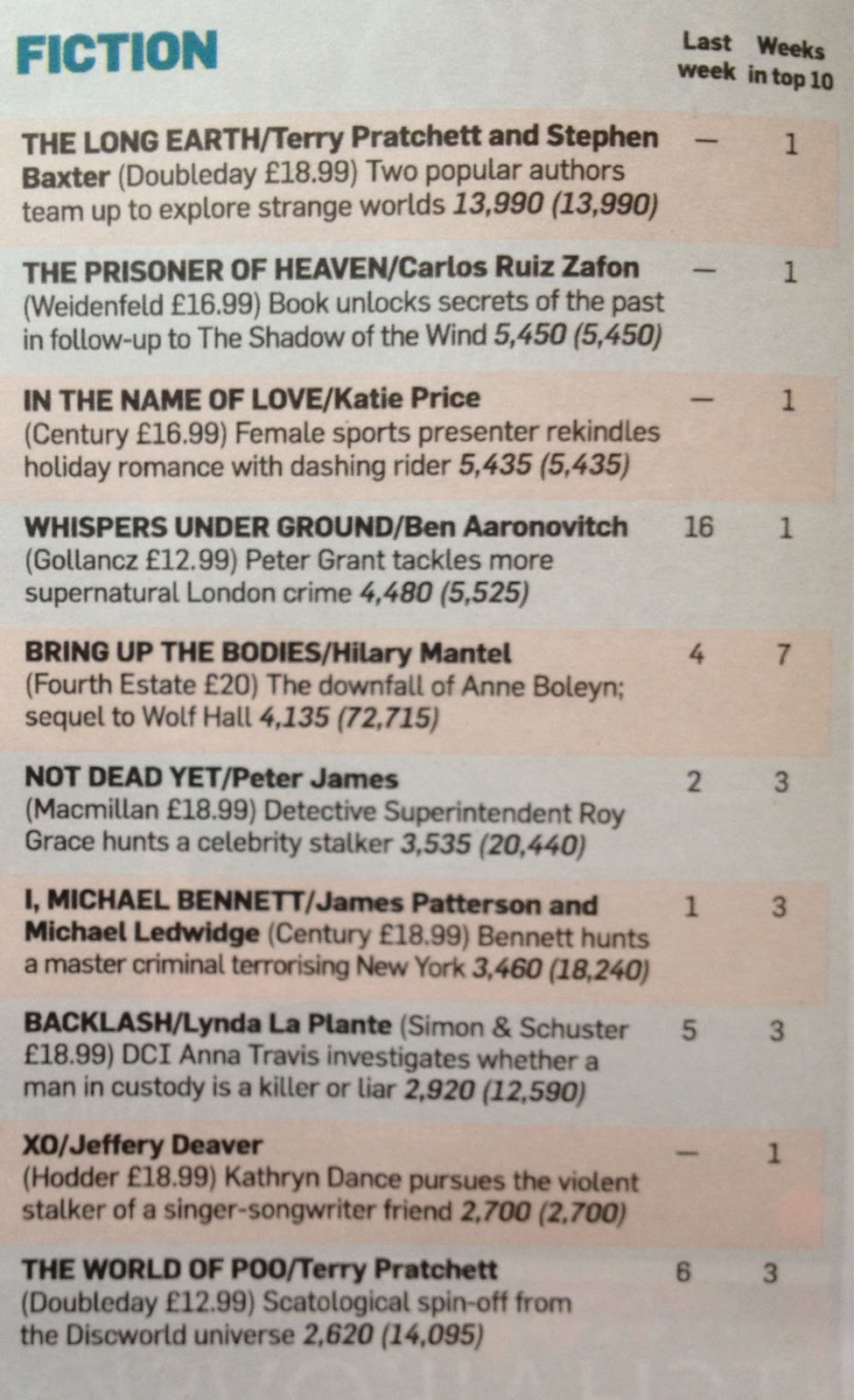 I was beaten to 3rd Place by Katie Price by dint of her selling more books than me. I'm not sure how that works, perhaps she gets a head start.