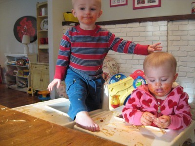 There are a lot of photos in this sequence. In some of them you can see the enormous pile of laundry in the chair in the background. Some of them are action shots of Chloe rubbing the noodles onto her eye. I don’t know why I was taking pictures instead of intervening. I imagine it felt therapeutic. Still does, actually!