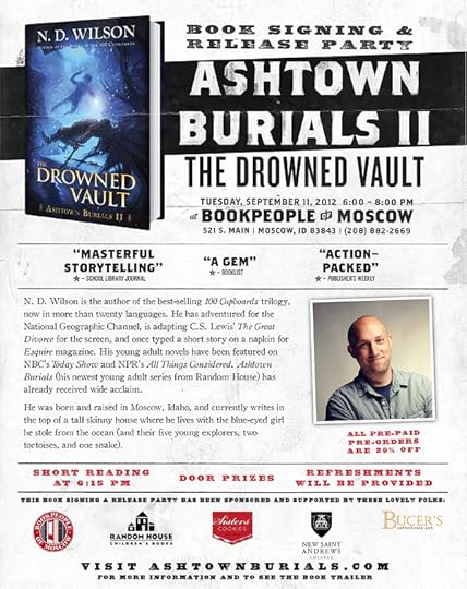 For all you Ashtown Burial fans, book two is nearly here! The Drowned Vault hits stores on September 11. We’re having a release party at BookPeople in Downtown Moscow from 6:00 – 8:00pm. There will be a short reading, Sister’s Cookies, Bucers ice coffee, and door prizes. All pre-paid, pre-orders are 20% off. If you’re in the area, come on down! Most of you aren’t local, but you can still get a signed copy at 20% off. Call in a preorder to BookPeople (208- 882-2669) to get the discount price and Nate will be happy to sign it before they ship it out. Think early Christmas presents… Hope to see many of you there!