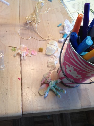 I am a very unstructured person by nature. I am not a person who enjoys schedules that follow the day around in 15 minute increments. Some people love that, but it doesn’t work for me. I tend to juggle things, in a constant mental state of triage. So the question about when I clean, what the kids do, and how it happens is something that has no easy answer. It has changed many times through the years. Our kids give up on napping while two. I usually keep them having a “reading rest” for a while after that if possible, and that has long been a time that I use for getting something, anything, done. Blaire is the only napper in our house now, and so the other four are out and about all day – stuffing backpacks full of dress ups, launching complicated scissor work at the dining room table, reading, doing puzzles, playing high speed tag, setting playmobile pieces all over the floor, making a restaurant in their closets with all the duplos they can find, dragging “cozy blankets” through the house to set up caterpillar camp in the living room, and generally living large. I try to keep things orderly mostly by keeping a spot things can go back to.