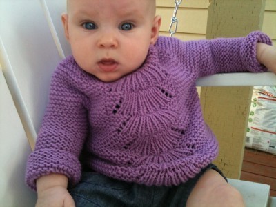 I also finished knitting a little sweater for my niece Zoe, a marvelous little person whom we just got to meet this weekend. She looks quite nice in it, although it is hard to tell what she thinks of it!