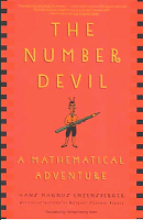 In The Number Devil by German author Hans Magnus Enzensberger, a middle school-age boy named Robert dreams of travels through the world of mathematics under the tutelage of an impish devil whom he at first finds annoying but gradually comes to enjoy and admire. At the start of the book, Robert is a mediocre and indifferent math student — no surprise, considering that his ho-hum teacher at school gives the students mathematical busywork without the least bit of mathematical inspiration. (His uncomprehending mother is no better: she believes a son who voluntarily speaks of mathematical concepts must be ill!) But Robert and the devil are on an irrepressible romp and together they challenge each other while developing plethora of mathematical concepts and meeting a pantheon of famous mathematicians. All names are whimsically disguised — Leonhard Euler becomes "Owl" (Eule in German translates to "owl" in English) and roots (as in square roots, cube roots, etc.) are called "rutabagas" (which are literal roots) — just two of many such examples. Figuring out the conventional words for the concepts at hand just adds to the devilish fun of this 1997 book which is well on its way to becoming a classic.
