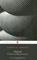 The narrator of the original Flatland is a square named – ready? — A. Square. He lives in a two-dimensional world, Flatland, but dreams of visiting a one-dimensional world, Lineland, where he tries to convince the ignorant monarch of a second dimension but fails to open the ruler's eyes to a universe beyond his familiar straight line domain. He also goes to one-dimensional Pointland inhabited by a monarch who is the sole inhabitant and, in fact, is the entire universe in and of himself! (He perceives any attempts at communication from the outside world to be his own thoughts.) Later, our narrator is visited be a three-dimensional sphere, which he finds incomprehensible until he accompanies Sphere to Spaceland. From there, the two discover that the leaders of Flatland know about Spaceland and a third dimension, but they prohibit their subjects from acknowledging it, under penalty of death or imprisonment. Square tries to convince Sphere of the possibility of fourth and fifth dimensions, but the notion is soundly rejected and Square is sent home in disgrace. It's not a happy story but fascinating and uplifting in its own way, and, like the subject matter, the book has many dimensions.