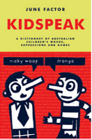 The most wonderful thing about many of June's books for children is that they are actually by children: she is merely the compiler, and what she has compiled is straight from the mouths of kids, whom she and her university students have observed, recorded and interviewed in school playgrounds. The researchers collected children's games, rhymes, sayings, chants, riddles, jokes and secret languages in abundance. In 2000, she published an entertaining and enlightening lexicon, Kidspeak: A Dictionary of Australian Children's Words, Games and Sayings. The two children depicted on the cover have harsh words for each other: "Nicky woop" says one in a speech bubble, to which the other retorts, "Drongo!" (Translation: "Go away!" and "Jerk!")