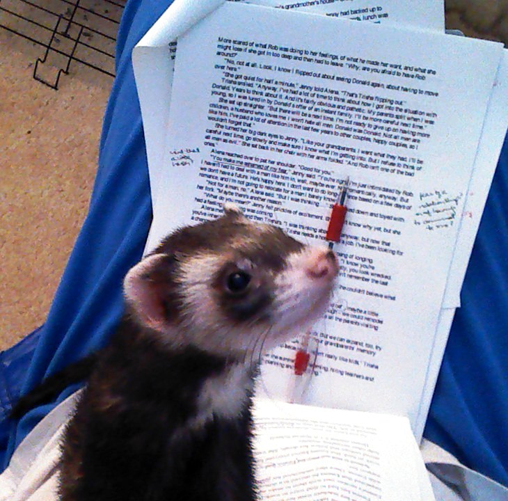 The Grammarian. He doesn’t have a lot to say about the content of your work, but he’ll circle every typo in red pen and may insist you follow strict grammar rules that have gone out of date. (By the way, I never use red pen on critiques – blue, purple, or green ink stands out from the black text, without that negative association of graded English papers.)