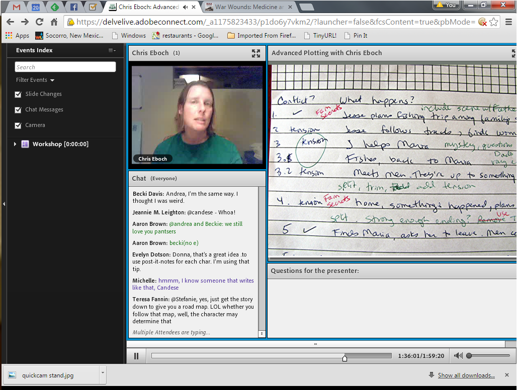 Finally, social groups can provide camaraderie and networking. I live in a small town with a science and engineering college; I know far more computer geeks than writers. But by making monthly trips to Albuquerque to attend a writing meeting, I’ve made many friends who understand what I do. I’ve also made connections by teaching workshops and guest speaking for groups like Sisters in Crime. For those who can’t attend in person, online discussion boards or listserves offer a sense of connection.