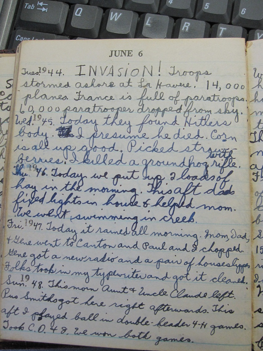 My father, who died in 1994. It’s no coincidence that my dad, like Eddie, was 12 when the war began and had an older brother who was a bomber pilot. Dad kept a little five-year diary during that time, and my book draws endlessly on the historical and farming details in the diary. I also took situations or incidents that Dad gave only a line or two in the diary and I expanded them into full-blown fictional events.