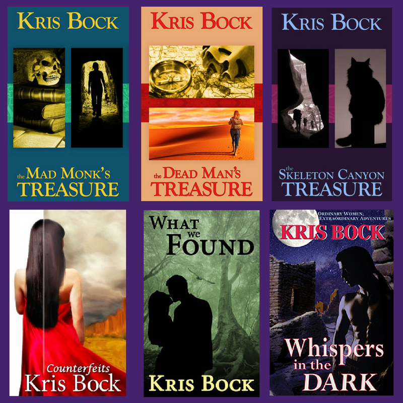 Kris Bock writes novels of romance, mystery, and suspense. Her Kris also writes romantic suspense set in the Southwestern U.S. If you love Mary Stewart or Barbara Michaels, try Kris Bock’s stories of treasure hunting, archaeology, and intrigue in the Southwest. Learn more at www.krisbock.com or visit Kris Bock’s Amazon US page or Amazon UK page. (For other countries click here.)