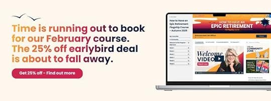 Our new, Autumn Edition of the How to Have an Epic Retirement Flagship Course is taking expressions of interest. There will be a 25% early bird discount for the first 200 people so get in there and get your name down. It kicks off in Feb 2025.
