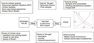 Price versus ValueI have long drawn a distinction between price and value, two terms that get used interchangeably in both academia and practice, but with very different drivers and implications. As we watch stock indices around the world gain and lose trillions each day, it is worth remembering that markets are pricing mechanisms, not value mechanisms, or as Ben Graham would put it, they are voting machines, not weighting machines, at least in the short term.