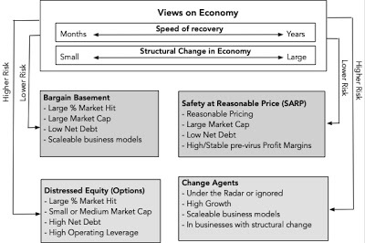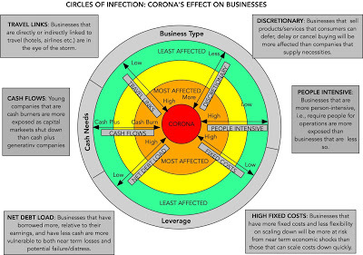 Valuing Individual Stocks/Sectors I have held back on individual stock valuations for the last two weeks, but I will start looking, and to help decide where to start, I created this very simple structure for thinking about what companies are most affected and least affected by the virus: