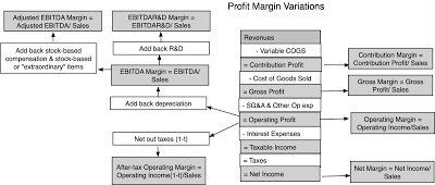 Margin Definitions & UsageWith profit margins, you scale profits to revenues, and as with growth, there are multiple metrics that can be used to compute margins, and which one is used is often a reflection of the biases that investors bring to the game. In the picture below, I look at a list of possible profit margins, and what each one is trying to measure: