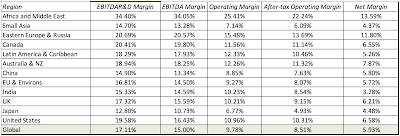ProfitabilityGrowth is only one part of the valuation puzzle, since without profits that come with it, it will be wasted. In this section, I will look at profitability across regions, sectors and subsets of stocks, again with the intent of eking out lessons that I can to in corporate finance, investing and valuation.