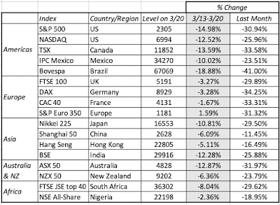 This is the third, and I hope the last, of my viral market updates, reflecting how much change a week can deliver, and last week delivered more change than most investors could handle. Not only did we see two of the worst market days in history, in absolute terms, we also saw the worst single day in US market history since October 19, 1987, in percentage terms. In fact, the price change this week has been so dramatic that it makes the tables that I provided last week on market damage, across sectors and regions, seem dated. In this post, I will update those tables, but I want to focus on a much larger question of how investors should craft a response to the market meltdown, and how that response cannot be one-size-fits-all.