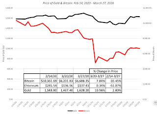 Download dataAt the risk of repeating what I have said in prior weeks, the drop in copper prices is consistent with an expectation of a global economic showdown but the drop in oil prices reflects something more. In fact, a comparison of Brent and West Texas crude oil prices highlights one of the more jaw-dropping occurrences during this crisis, when the price of the latter dropped below zero on April 19. The oil business deserves a deeper look and I plan to turn to that in the next few weeks. Finally, I look at gold and bitcoin prices during the crisis, with the intent of examining their performance as crisis assets: