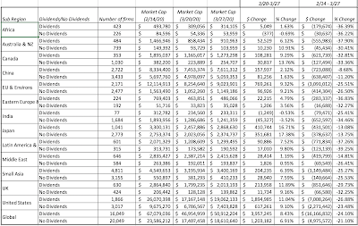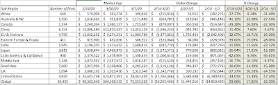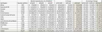 Equities: A BreakdownIn keeping with a practice I have adopted on my prior updates, I downloaded individual stock data on 37,050 publicly traded global companies, with market capitalizations exceeding $5 million, and computed changes in market cap, by region: