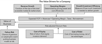 Growth, Profits and Cash FlowsThe trickiest part of valuation is negotiating a balance between growth, profitability and reinvestment, with a plausible story holding them together, to derive value.The Scaling Factor: Growth plays the 'good guy' role, allowing small companies to become big, and big firms to become even bigger. While a growth rate can be computed on any metric, the metric that best reflects operating growth is revenue growth, accomplished by either selling more units or racing prices.The Profitability Driver: Growth, by itself, can only scale up a firm's operations and revenues, but for that scaling up to pay off, it has to become profitable. Again, while there are many measures of profitability, scaling profits to revenues to arrive at profit margins makes the most sense.The Reinvestment Lever: To grow, a company has to reinvest in capacity, in whatever form, and this reinvestment can drain cash flows. This reinvestment can be tied to earnings, as a retention ratio or a reinvestment rate, or to sales, as a sales to invested capital ratio.If that sounds familiar, it is perhaps because you have seen me value many companies on this blog, using these three variables, added on to a risk component, to value companies as diverse as Kraft Heinz to Tesla to Beyond Meat. In fact, the cash flows that you observe for a firm can be captured by the interactions between these three forces, and those interactions let us differentiate between great, average and bad firms: