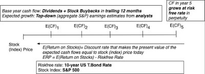 In all of this discussion, you will note that I have not mentioned the Fed, and to those who are Fed-focused, it may seem like I am ignoring the elephant in the room. I have argued, for much of the last decade, that analysts and investors over estimate the effect that the Fed has on markets. To the counter that it is low interest rates that are keeping the index level high, my response is that low interest rates cut both ways, first by lowering the discount rate (and thus increasing value) but also by signaling much lower growth in the long term (which I capture by lowering growth in perpetuity to the risk free rate). In fact, in my valuation spreadsheet, I offer the option of raising interest rates to what you may believe are more normal levels over time, and you can check out the effect on value, and don't be surprised if it is not as large as you expect it to be, since I also adjust growth rates and equity risk premiums to reflect changed rates. In fact, use the spreadsheet to and make your disagreements with me explicit, come up with your value for the index, and let's get a crowd valuation of the S&P 500 going. (It is a google shared spreadsheet, where you can enter your estimated value for the index).