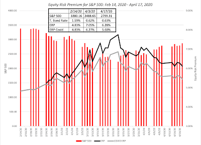 What now?I know that this post has meandered and I am sorry, but in this last section, I will come back to the numbers, by first updating my valuation of the S&P 500 and then moving on to both update the tables on market damage from March 6 to reflect the last week's market action.