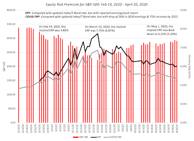 It has been close to four weeks since my last viral market update, and I could come up with a whole host of excuses for the delay, but the truth is that I have not had much to say that is original, and I am naturally lazy. That said, markets have settled in, mostly with an upward bias in these last few weeks, and the big question, as US equities climb back towards pre-crisis levels is whether the market has lost its bearings. After all, the news, whether on macroeconomic indicators or company-level earnings, is not just bad, but historically so, and it seems incongruous that markets should be rising, when consumer confidence and spending are plummeting, the ranks of the unemployed rising and professional economists are painting a picture of impending doom. There are some market gurus who are pointing to this disconnect as evidence that markets are just wrong and that a major correction is around the corner, but their credibility is undercut by the fact that many in this group have been forecasting this correction for the last decade, and with metrics (PE, CAPE, Shiller PE) that have lost their potency. I have absolutely no shame in admitting that I am not a market timer, but I do believe that embedded in market action is always a link, though sometimes tenuous, to fundamentals. In this post, I will start with my usual updates of what has transpired in the last few weeks across markets, in general, and equities, in particular. I will then revisit my framework for valuing the S&P index, which I first presented in my first viral market post on February 27 and then expanded on in subsequent posts on March 9 and March 16. While I will update my valuation of the index, given what we have learned since, I will also follow a template that I developed when I valued Tesla earlier this year, and offer a Do-it-yourself (DIY) valuation of the index.