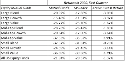 The Crisis PerformanceActive investors have argued that their failures were due to an undisciplined bull market, where their stock pricing expertise was being discounted, and that their time would come when the next crisis hit. There were also dark warnings about how passive investing would lead to liquidity meltdowns and make the next crisis worse. If active investors wanted to have a chance to shine, they have got in their wish in the last few weeks, where their market timing and stock picking skills were in the spotlight. With their expertise, they should have managed to not only to avoid the worst of the damage in the first few weeks, but should have then gained on the upside, by redeploying assets to the sectors/stocks recovering the quickest. While there is anecdotal evidence that some investors were able to do this, with Bill Ackman's prescient hedge against the COVID collapse getting much attention, I am sure that there were plenty of other smart investors who not only did not see it coming, but made things worse by doubling down on losing bets or cashing out too early.