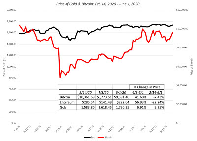 Download dataCopper prices are down about 7% on June 1, from February 14 levels, but that is as improvement from the almost 14% drop in mid-March. The oil market has had volatility that cannot just be explained by the COVID crisis, as oil prices plunged in late April, with West Texas crude dropping below zero on April 19, but even oil prices have seen recovery in the last few weeks. Finally, I look at gold and bitcoin, the former a crisis asset of long standing and the latter a new entrant.