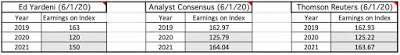 While the picture looks daunting and your estimates are fraught with uncertainty, we are now in a better position to estimate the effects than even a few weeks ago:Earnings and Growth: In 2019, the companies in the S&P 500 reported 163 in earnings, and analysts were forecasting modest growth of about 4% over the next five years, prior to the crisis. It is beyond debate that the economic shut down will be devastating for earnings in 2020, with the damage spilling over in 2021. In my valuation in March 2020, there was almost no information on the extent of this damage, but as companies have reported first quarter earnings, we are getting. preliminary estimates of future earnings. In the picture below, I look at three sets of predictions from analysts who trace the index: