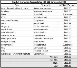 Sources: Yardeni, Thomson Reuters, FactsetI follow up by also reporting on what market strategists at major banks are forecasting: