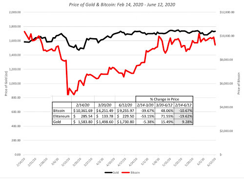 Gold has held its value and is up 9.28% during the crisis, though it saw less upside during the first few weeks of this crisis than in prior ones. Bitcoin has behaved more like equity, and very risky equity at that, during this crisis, dropping almost 40% between February 14 and March 20, before recovering to close down only 10.67% by June 12.