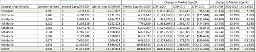 The Crisis Effect across the Life CycleA crisis tests all companies, but the dimensions on which they get tested will vary depending on where they fall in the life cycle. Start up and very young companies: For young companies, the challenge is survival, since they mostly have small or no revenues, and are money losers. They need capital to make it to the next and more lucrative phases in the life cycle, and in a crisis, access to capital (from venture capitalists or public equity) can shut down or become prohibitively expensive, as investors become more fearful. These companies will either have to shut down or sell themselves at bargain basement prices to larger, deeper-pocketed competitors.Young growth companies: For young growth companies that have turned the corner on profitability, capital access still remains critical since it is needed for future growth. Without that capital, the values of these firms will shrink towards assets in place, and in a crisis, these firms have to hunker down and scale back their growth ambitions.Mature firms: For mature firms, the bigger damage from a crisis is the punishment it metes to assets in place, as the economy slows or goes into recession, and consumers cut back on spending. The effect will be greater on companies that sell discretionary products than on companies that sell staples.Declining firms: For declining firms, especially those with substantial debt, a crisis can tip them into distress and default, especially if access to risk capital declines, and risk premiums increase. In summary, the answer to the question of which companies (young or old) get affected more in a crisis will depend on how the crisis affects the real economy and capital access. In most crises, it is access to capital that takes the early hit, with the pain from economic effects showing up more gradually. As a result, in the first parts of the crisis, it is the firms at either end of the life cycle (young companies and declining ones) that are most dependent on new capital to survive that are hurt the most, with the pain spreading more slowly to mature firms, and least to firms that sell consumer staples. How has this crisis played out in terms of damage to companies across the life cycle? Let me start with a very simplistic measure of life cycle, company age, as measured from the year of founding: